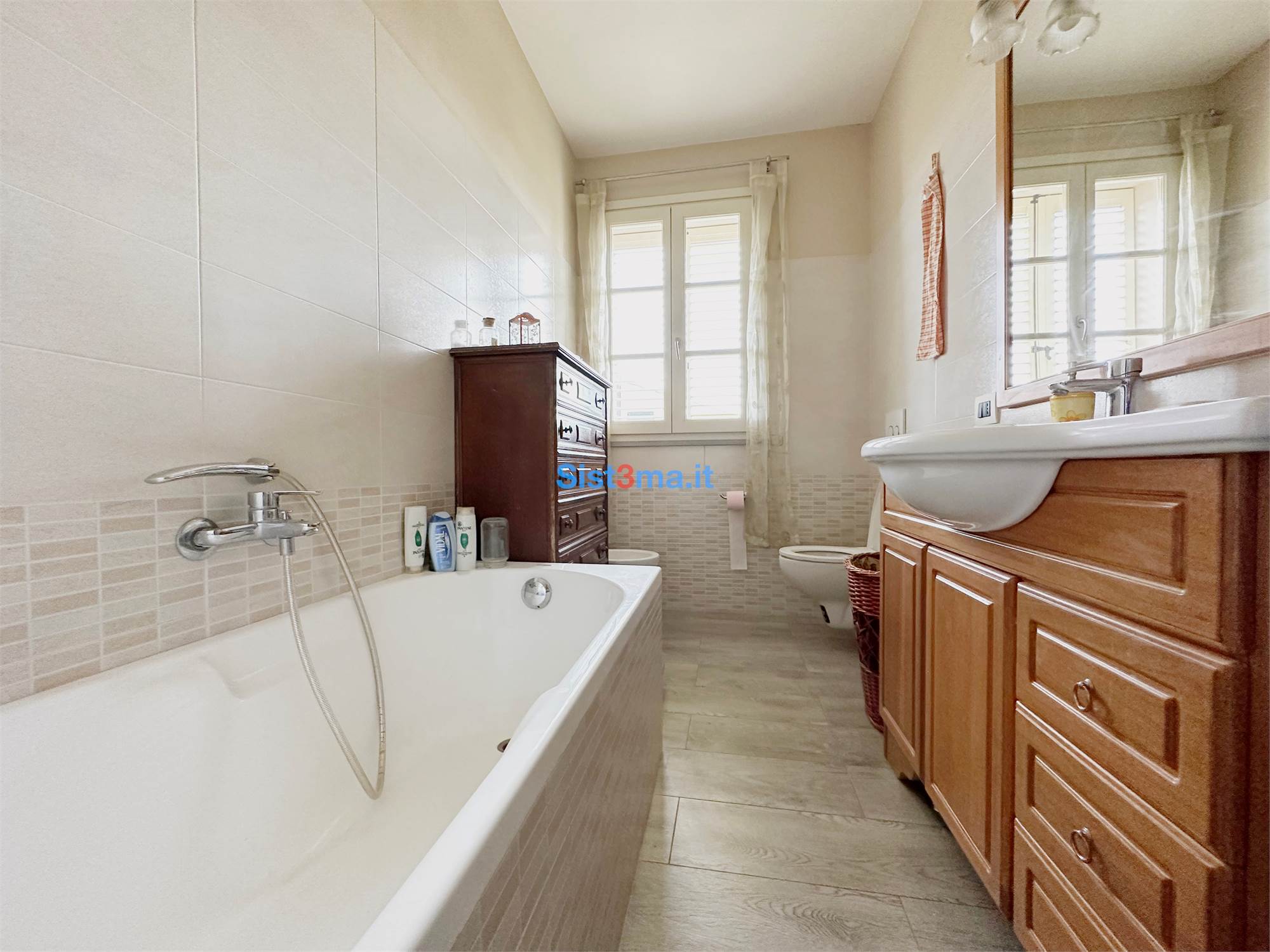 The villa comprises on the ground floor entrance, living room with fireplace, eat-in kitchen with pantry, study, double bedroom with private bathroom and walk-in closet, bathroom with laundry, on the first floor three bedrooms and bathroom with tub. Accompanied by attic for storage use and pergola.