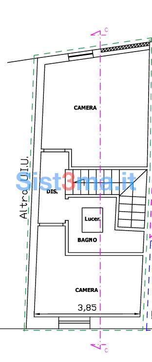 Al primo piano si sviluppa la zona notte, composta da una camera matrimoniale, una camera singola e un bagno moderno con doccia.