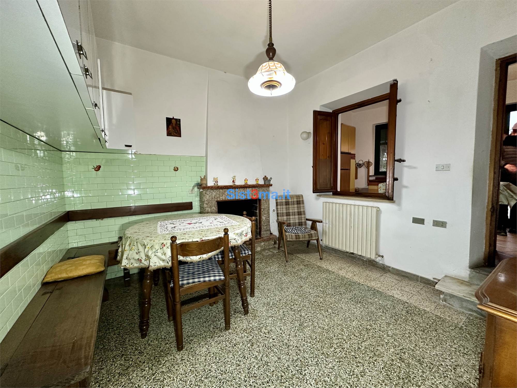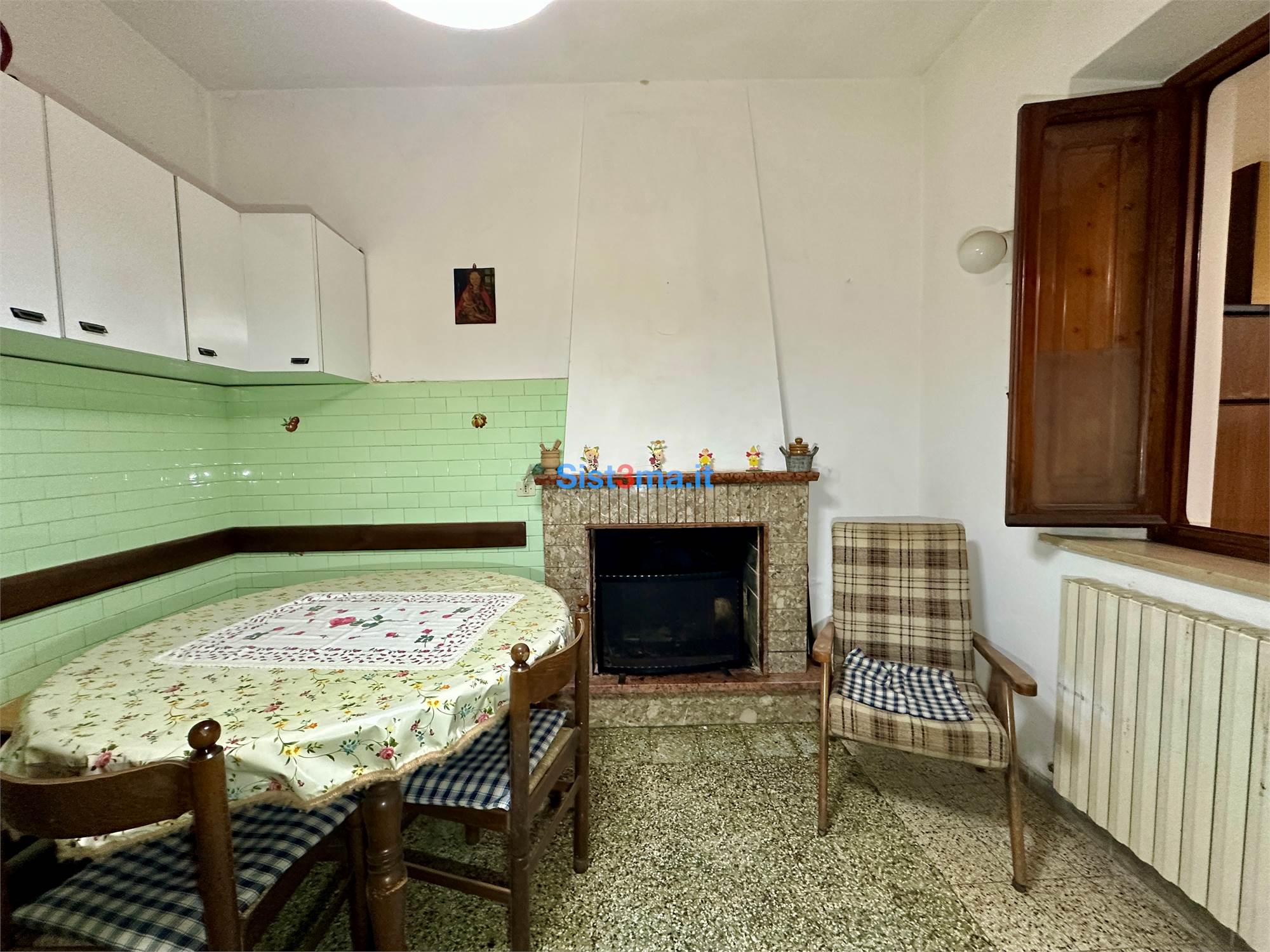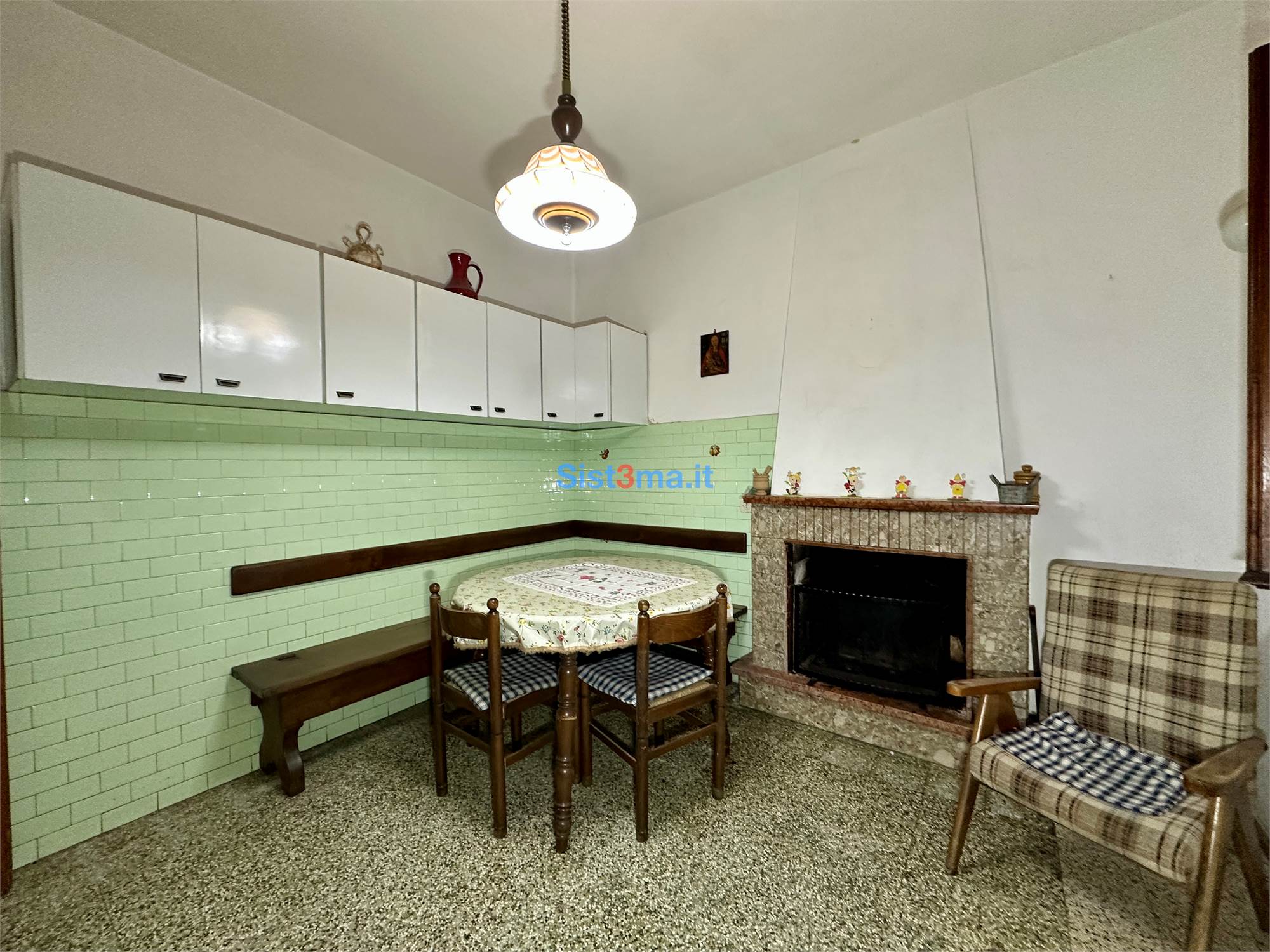 L'immobile si compone da: piano terra, ingresso, sala, sala da pranzo con camino e cucinotto, al primo piano troviamo, disimpegno zona notte, due camere matrimoniali e bagno con vasca.