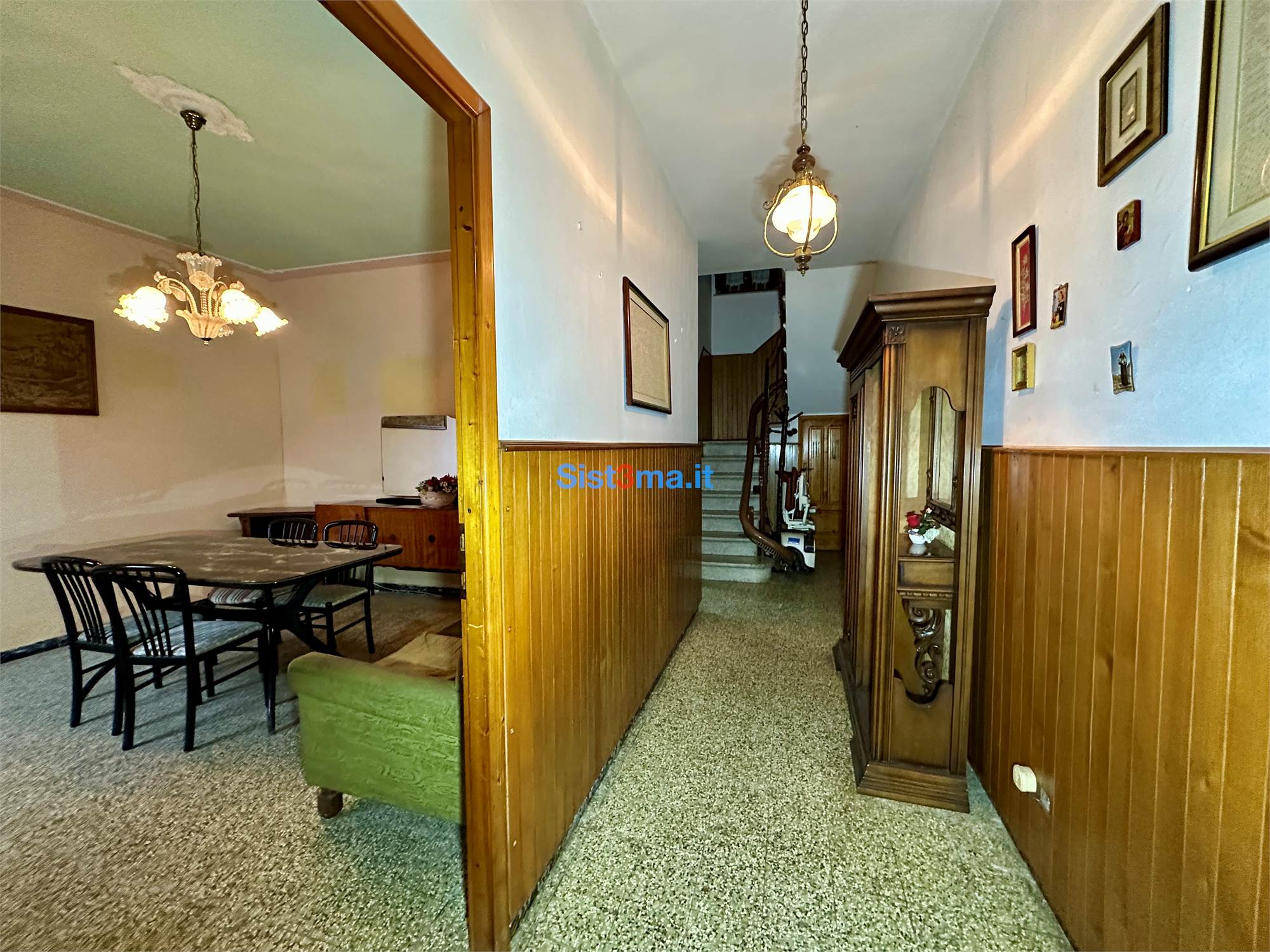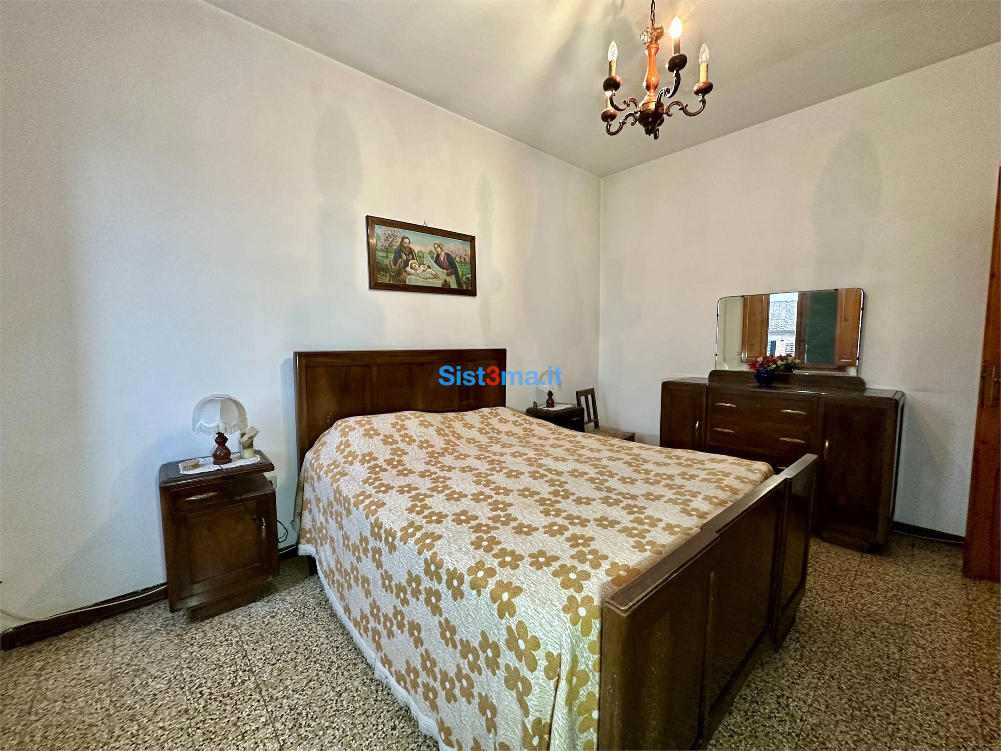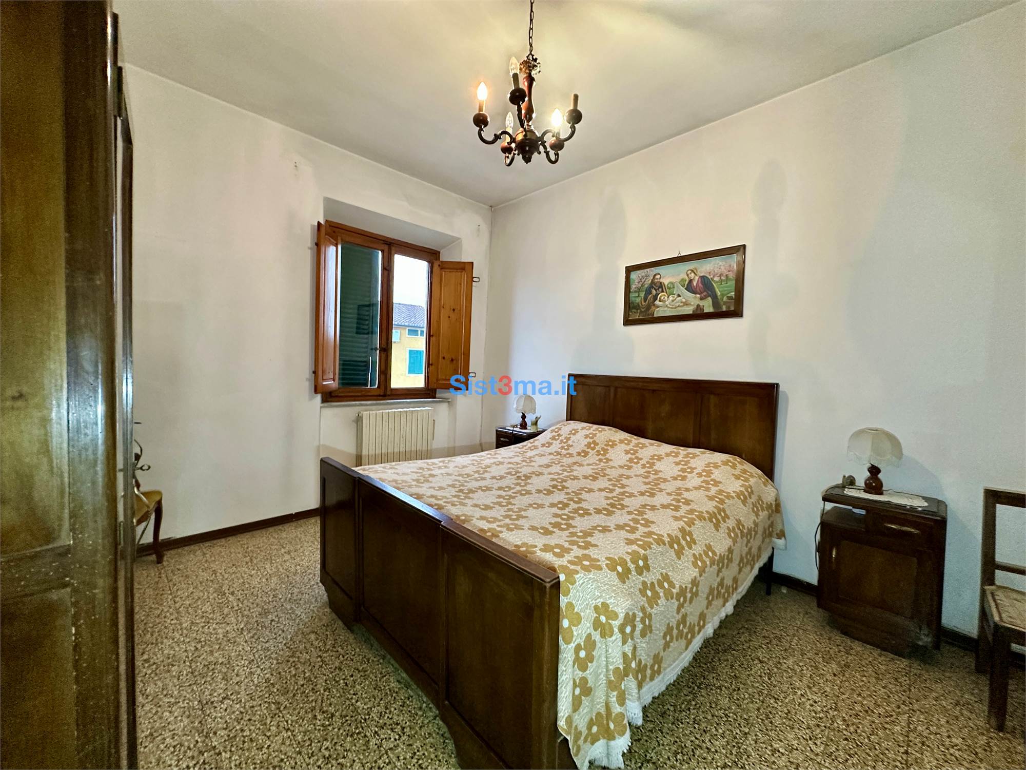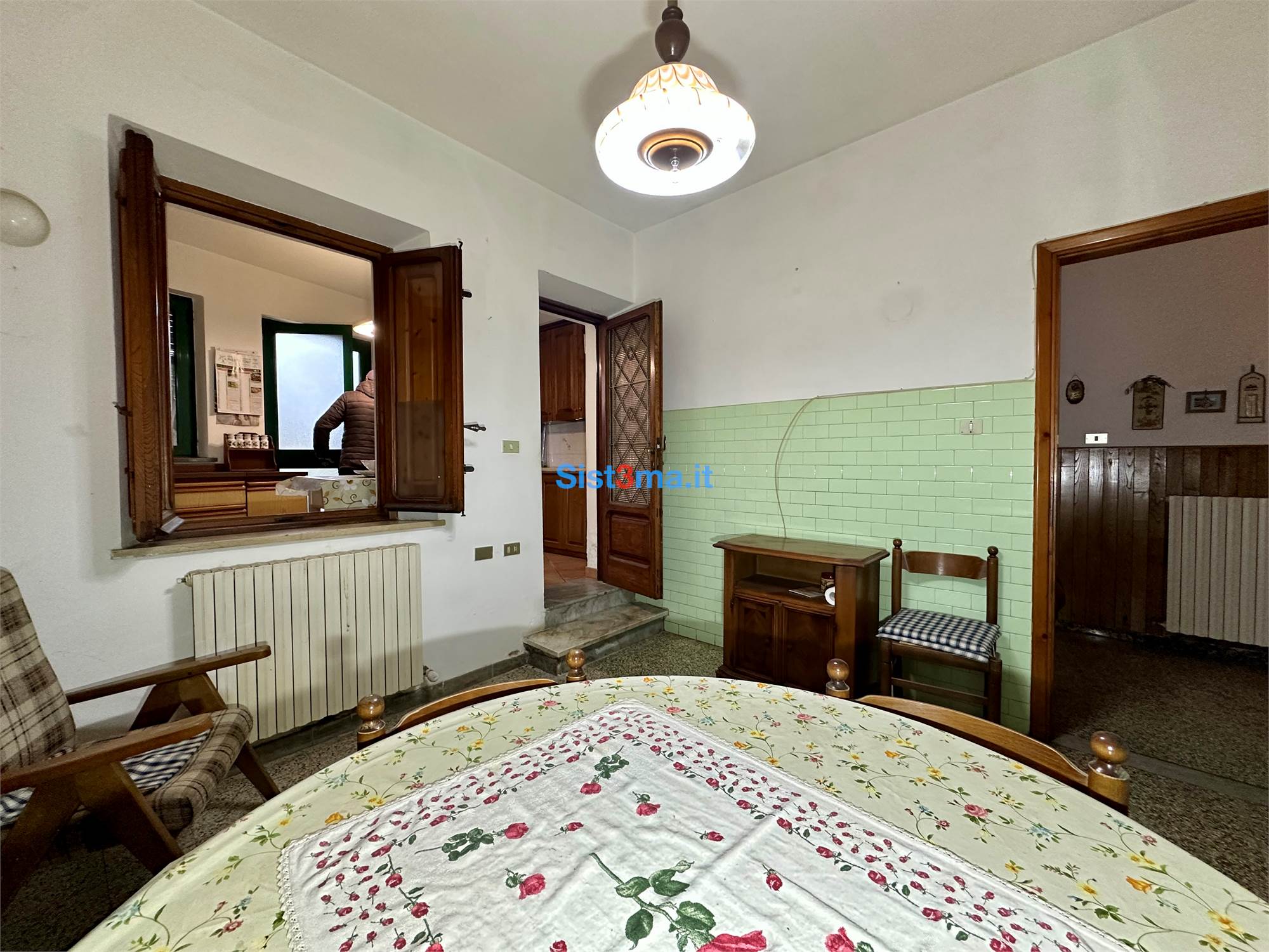 L'immobile si compone da: piano terra, ingresso, sala, sala da pranzo con camino e cucinotto, al primo piano troviamo, disimpegno zona notte, due camere matrimoniali e bagno con vasca.